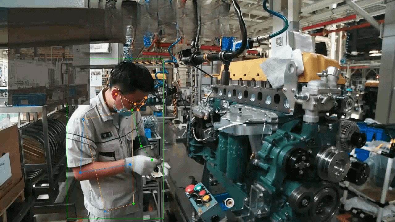 • 通过AI行为分析动作理解技术发现人工生产中的违规操作,提示员工及时改正,避免给不达标产品流到下个环节。